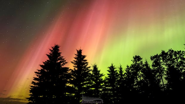 Nature photographer Dar Tanner recounts the second she captured a colourful sky lit by the aurora borealis close to Alix, Alta.